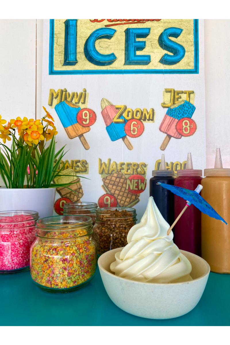 Karamellsaus, jordbærsaus, sjokoladesaus, (melk, hasselnøtter)